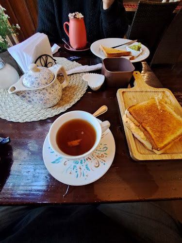 Un lugar súper agradable con amplia terraza hacia la vereda y en la parte trasera. Un salón de te donde puedes encontrar ricos sándwiches y hamburguesas, tortas y tés diferentes. Es un bello rincón mágico. Muy bien atendido y buenos precios.